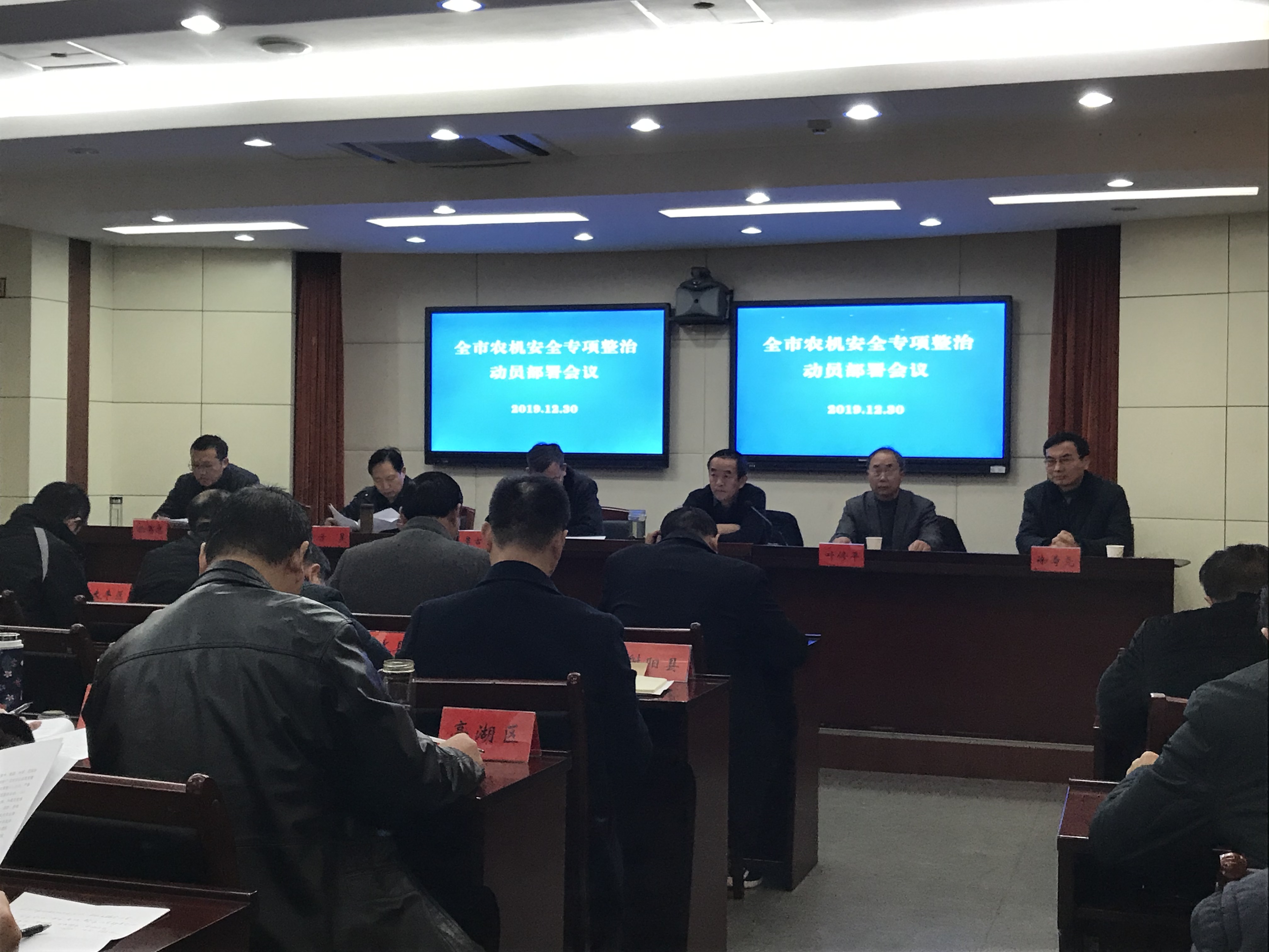 为认真贯彻落实中央、省、市关于深入开展安全生产专项整治行动的部署要求和全省渔业农机安全专项整治视频会议精神,动员部署为期一年的农机安全专项整治工作,12月30日,市农业农村局在盐城召开全市农机安全生产专项整治动员部署会议。各县(市、区)农业农村局及盐城经济开发区、盐南高新区分管局长、职能科室负责人、农机监理所长,市农业农村局相关处室所有人员,市农机稽查支队中层以上干部,市农机维修节能指导站主要负责人参加会议。会议对盐城市农业机械安全生产专项整治实施方案进行了解读,市农机稽查支队结合自身业务作了发言。市农业农村局调研员陶森林对开展农机安全生产专项整治进行全面部署;市纪委派驻纪检组组长皋古庆,副组长方昊、叶修平出席会议,皋古庆组长讲话。