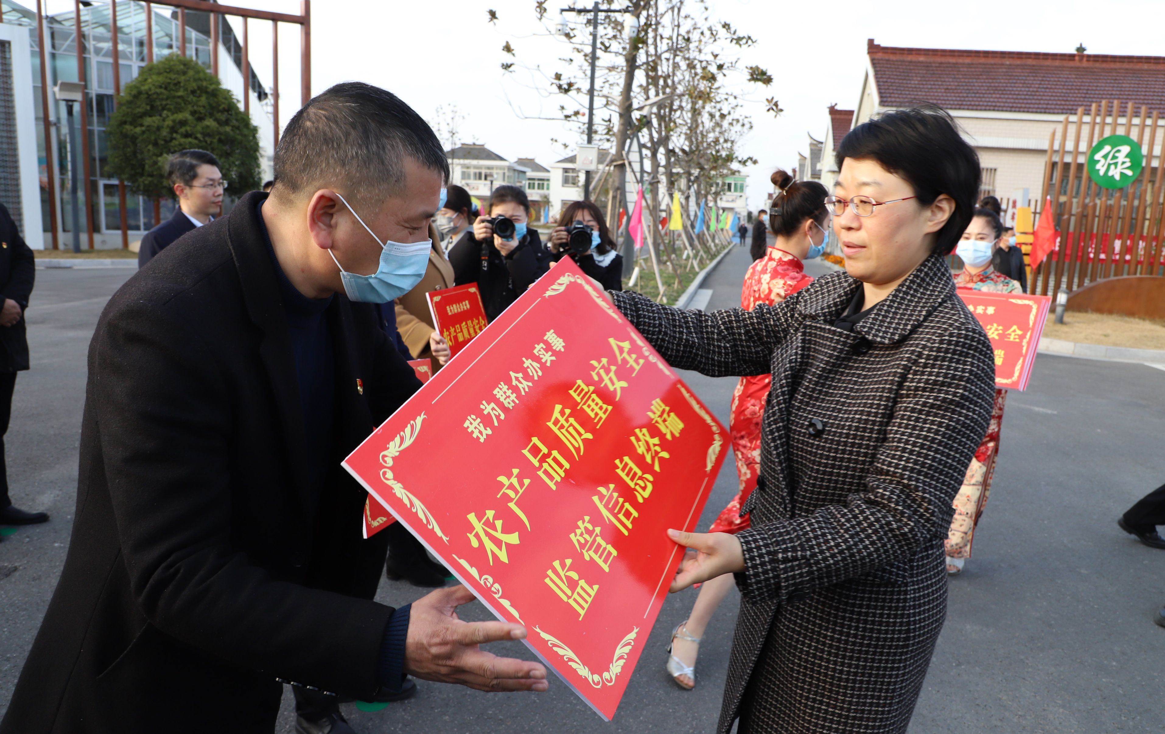 12月8日下午,盐城市镇级农产品质量安全监管信息终端发放仪式在盐都区潘黄都市农业产业园举行。市政协陈红红主席、吕拔生副主席、殷勇秘书长,盐都区区委王娟书记、区政协张建洋主席、区政府周昉副区长等领导参加此次活动。发放仪式由市农业农村局孙新建副书记主持。