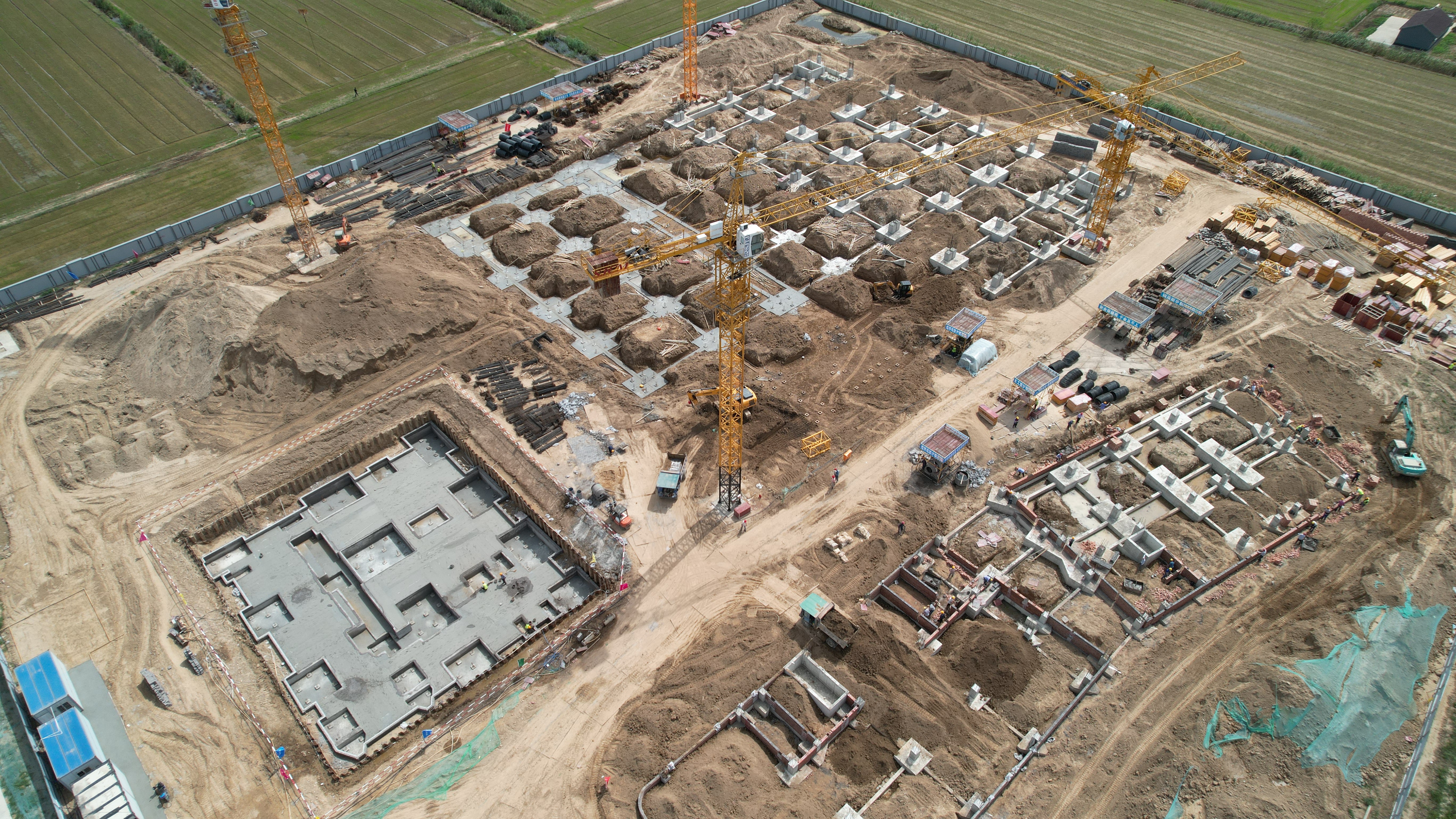 项目计划总投资1.5亿元,全部为2022年计划投资。占地40亩,新建厂房及办公用房,购置TWDSH-300大型落地式锯骨机、TWSH-806-2P定制六人双层挑选线、机械手米饭生产线等设备共计120台(套)。项目建成后可形成年加工2万吨农产品及中央厨房配送中心的生产能力。截至目前,项目已完成投资3500万,年度计划投资完成率23.33%。综合楼基础墙砌筑完成,回填土完成80%;生产车间桩基础承台浇筑完成40%,垫层浇筑完成80%,消防水池卷材防水完成20%。