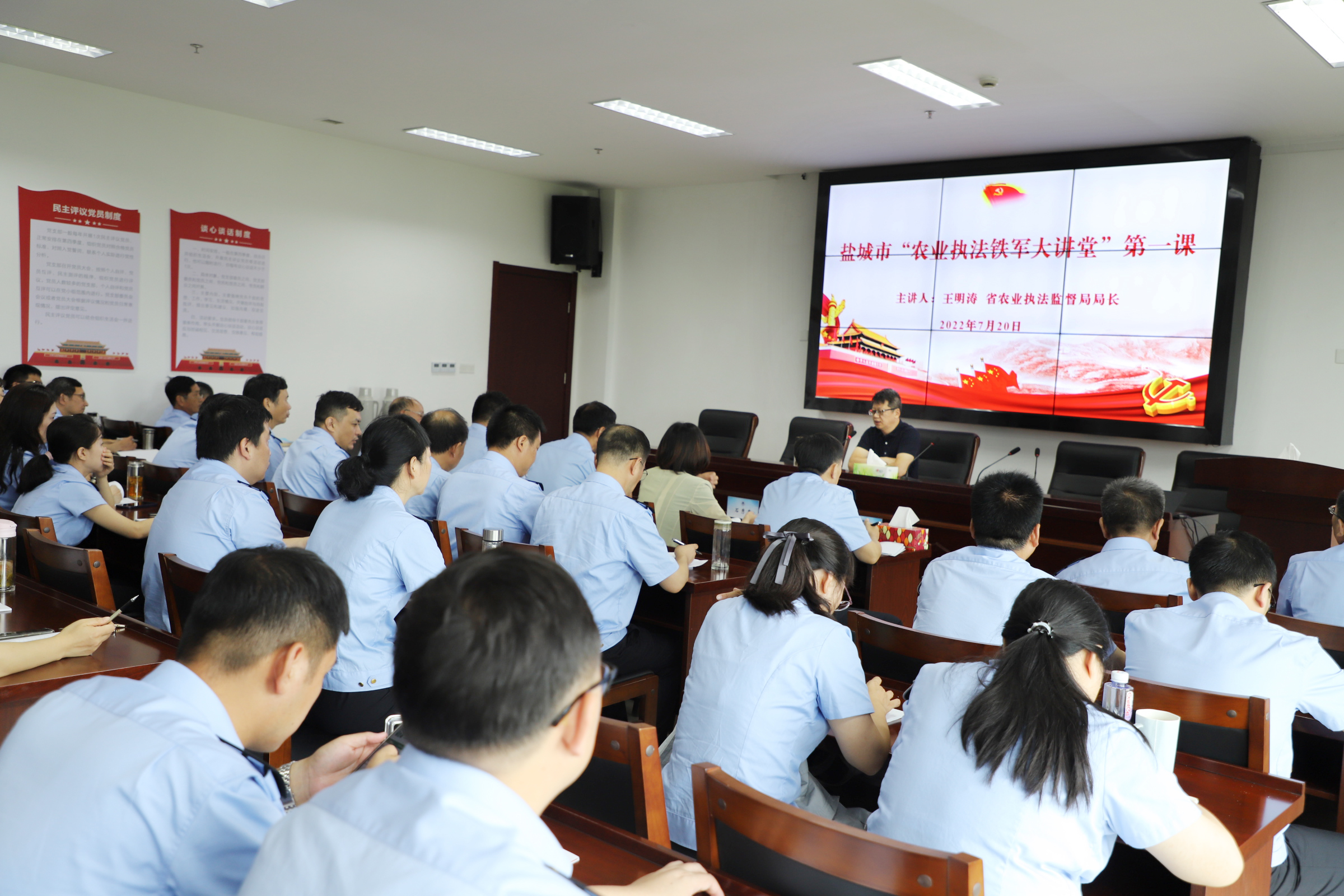 为加强队伍建设,提升执法人员综合素质,提高主题党日学习质效,着力打造一支政治强、业务精、作风硬的农业综合执法铁军队伍,7月20日,市农业综合执法监督局组织开展“农业执法铁军大讲堂”活动,执法局全体人员参加。