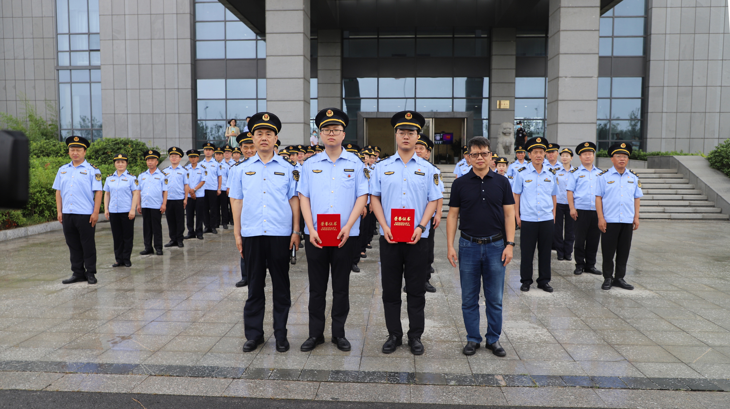 在“政治讲堂”环节,执法局全体人员在农业综合服务中心南广场举行升国旗、奏国歌及队列训练活动,陆立中局长带领大家高呼“执法有我,农业有我,强国有我;文明执法,公正执法,廉洁执法”口号,展现农业执法人员积极向上的精气神。省农业综合行政执法监督局王明涛局长和市执法监督局陆立中局长分别向局第二季度执法办案明星曾鹏、耿杰颁发证书,激励所有执法人员阔步向前,争当先进。