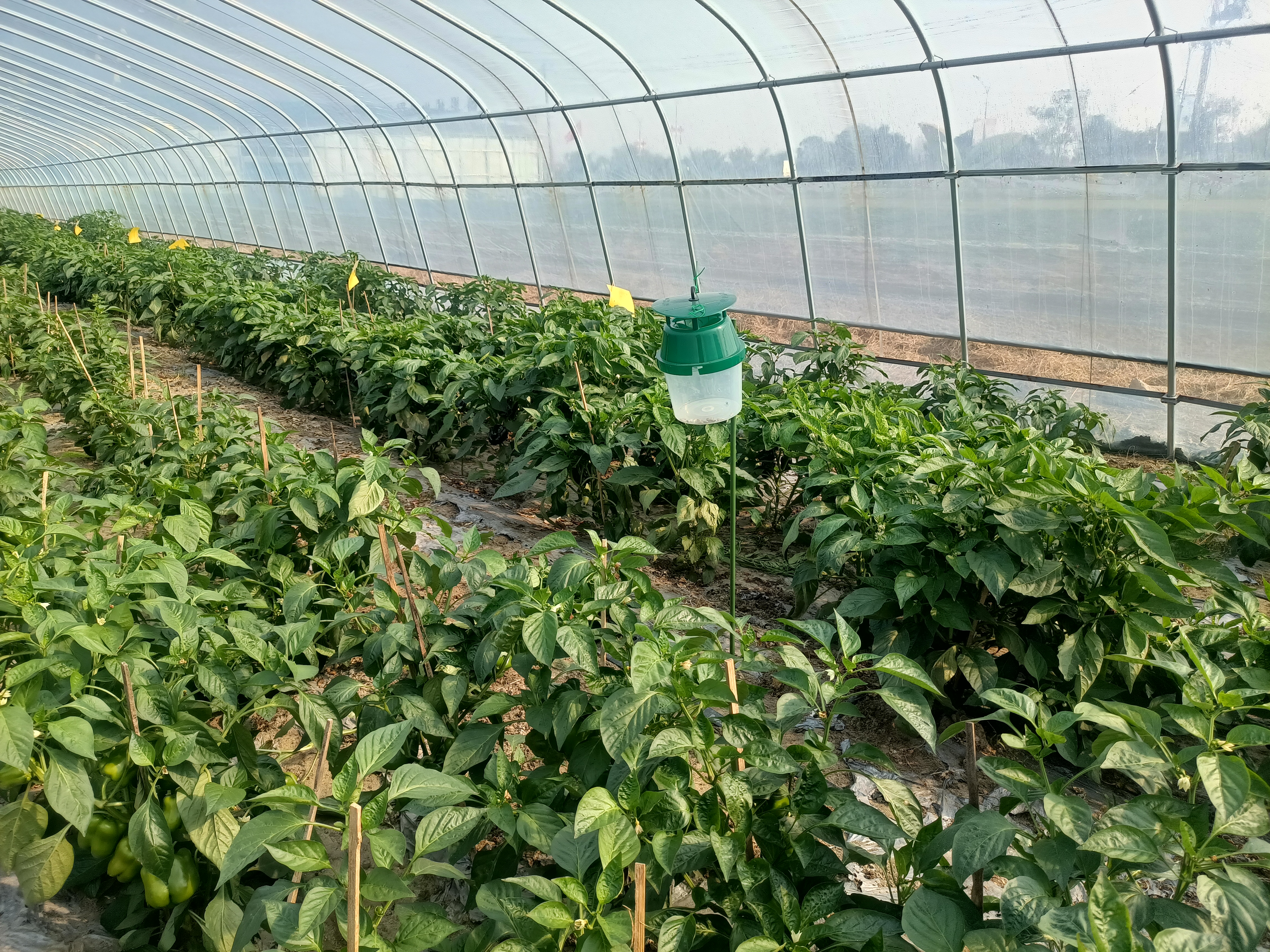 三、推广避雨栽培,“两网”覆盖。由于8月光照强、气温高、病虫害重,灾害天气多。要及时清除田间沟边杂草,保持内外三沟畅通。利用空茬大棚,覆盖或保留顶棚膜基础上,在棚顶加盖遮阳网,围裙两侧及大棚两头进出口覆盖防虫网,防止蚜虫、飞虱等害虫侵入,降低高温多雨对瓜菜生产影响,进入开花初期、果实膨大期,每亩追10-20kg复合肥或冲施肥,促进果实迅速膨大。