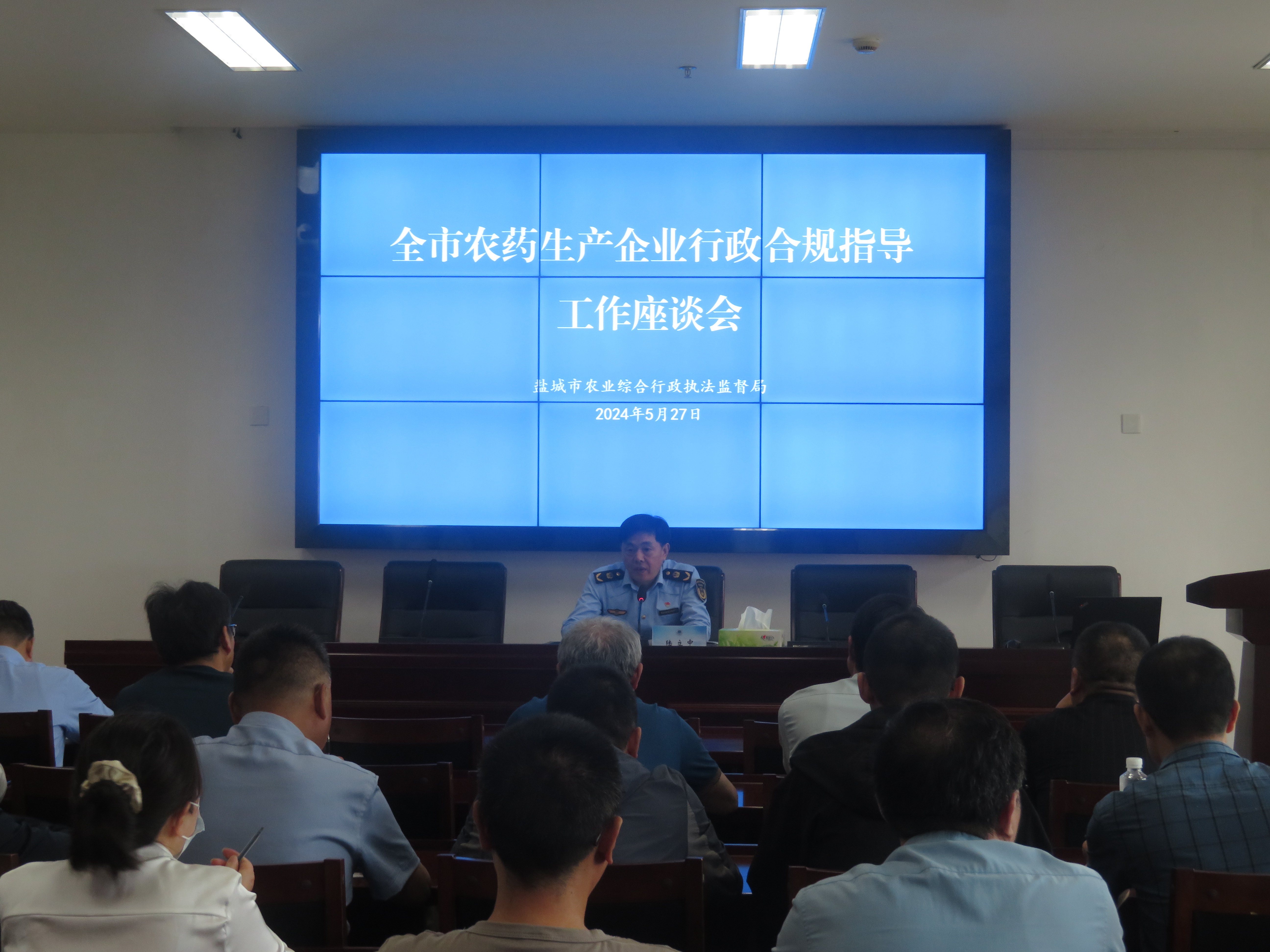 为服务农药生产企业,规范农药生产经营行为,保障农业生产安全及粮食安全,按照《盐城市关于推行涉企行政合规全过程指导工作的实施方案》要求,5月27日下午,市农业执法监督局召开全市农药生产企业行政合规指导工作座谈会,市农业农村局党委委员、执法监督局局长陆立中出席会议并讲话,全市20家农药生产企业负责人参加座谈。