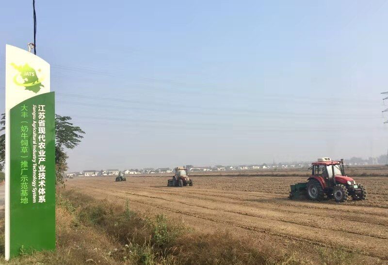 “秋种一季定全年”。“霜降”这天一大早,在大丰经济开发区同圣村的一处大田里,江苏盐城众鑫农业合作社理事长沈琴和几位员工一起,将一包包金灿灿的“苏啤3号”大麦种子和乌油油的生物炭基复合肥倒进大型拖拉机后置的种子、肥料箱。少顷,8台大马力拖拉机按照“先犁后耙再播种,然后再把墒沟挖”的作业流程,轰鸣着驶向大田深处。沈琴告诉记者,今天他们耕种的是江苏省现代农业(奶牛)产业技术体系的400亩优质青贮大麦试验示范基地。虽然这些大麦长成后将用于奶牛、山羊等牲畜饲料,但他们看重的是一棵棵饲草背后“一杯奶”的质量好坏,他们和种植常规麦子一样按部就班,“用心用力”,无论是麦种的选择、基肥的生物功效以及播种质量,他们都坚持从头抓紧,以优质饲料的供应,换取奶牛挤出的每一滴奶的高品质。采访中记者发现,众鑫合作社此次种植的“苏啤3号”大麦,按照常规播期和墒情现状,可以按每亩15公斤的播种量。但由于青贮大麦不仅要有饱满的籽粒保证蛋白质含量,而且要有足够的秸秆鲜草量达到饲料干物质纤维素等等的结构标准。为此,沈琴决定每亩地增加2.5公斤的播种量。虽然每亩增加了十多元的用种用肥成本,但只要大麦生育期管理措施得当,那么,明年初夏收获的青贮大麦将无疑是牛羊养殖企业最欢迎的上等饲料。