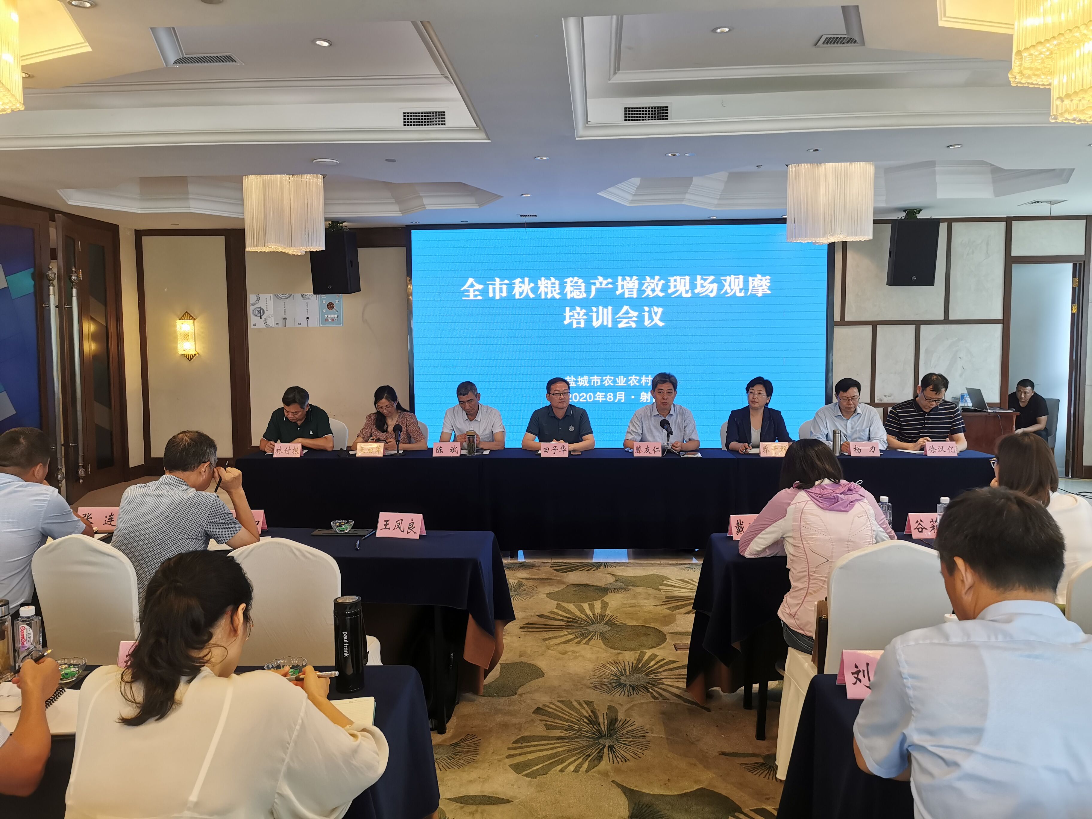 为深入贯彻习近平总书记关于确保粮食安全的重要讲话和指示精神,认真落实中央和省关于稳定粮食生产系列政策和高质量发展要求,传达全省水稻绿色高质高效生产管理现场观摩培训会精神,深刻分析当前粮食生产面临的形势,全力推进秋粮增产增效,推动水稻等粮食产业高质量发展,8月11日,我市在射阳举办了全市秋粮稳产增效现场观摩培训会议,市农业农村局滕友仁副局长、陈斌四级调研员出席会议。