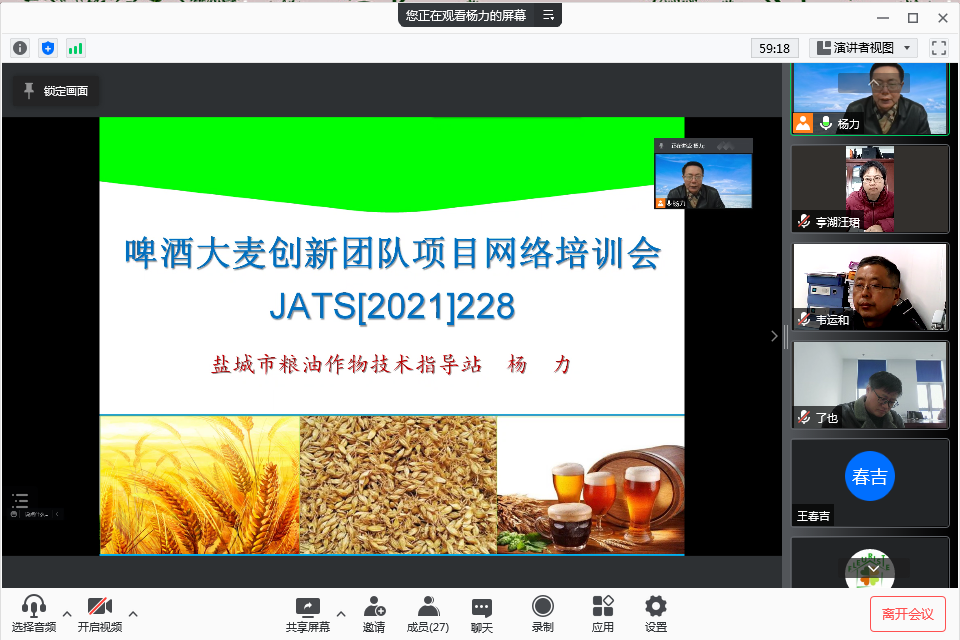 最后,市粮油站站长杨力作了大麦相关技术培训,围绕大麦产业调研情况,青贮大麦产业模式创新,连阴雨降温天气大麦应急管理进行了深入讲解。