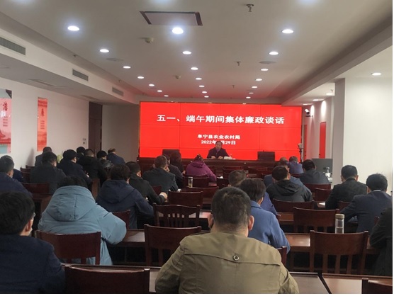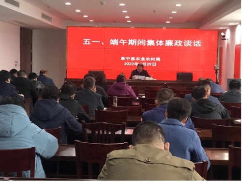 近日,阜宁县农业农村局召开2022年“五一”节前廉政谈话会,开展节前警示教育。会议上,刘士忠副局长代表局党委传达学习了县纪委《关于严明2022年五一、端午期间有关纪律要求的通知》,通报了《关于2起违反中央八项规定精神典型问题的通报》,要求全局党员干部从通报的典型案例中吸取教训,结合岗位职责认真贯彻落实中央八项规定精神,真正做到入脑入心,自觉筑牢拒腐防变的思想防线。对全局党员干部进行节前廉政谈话,他要求全局人员,严格执行党风廉政准则,严格遵守政治纪律和规矩,严于自律、公道正派、洁身自好,自觉抵制不良风气,过一个清廉、文明、祥和的节日。