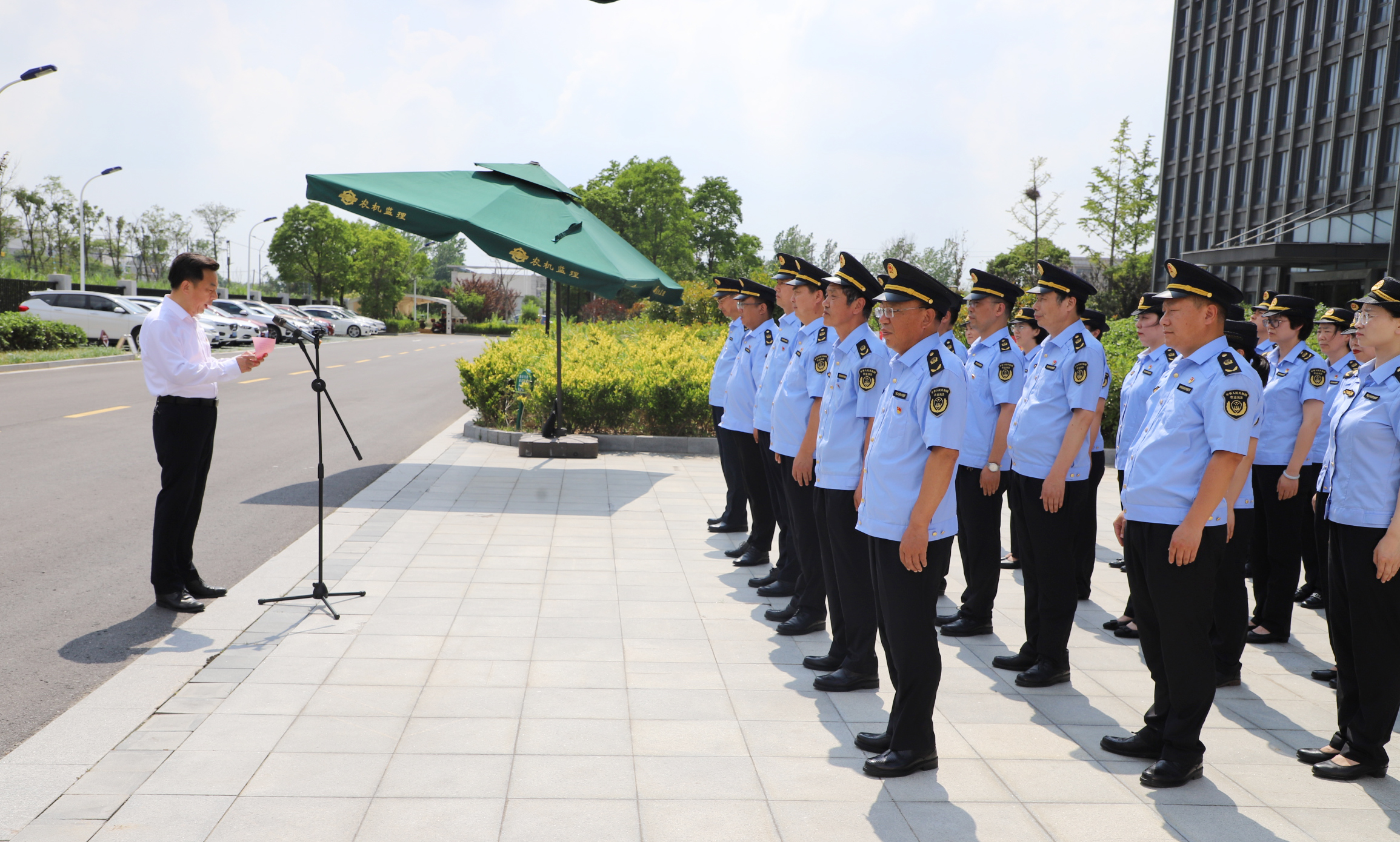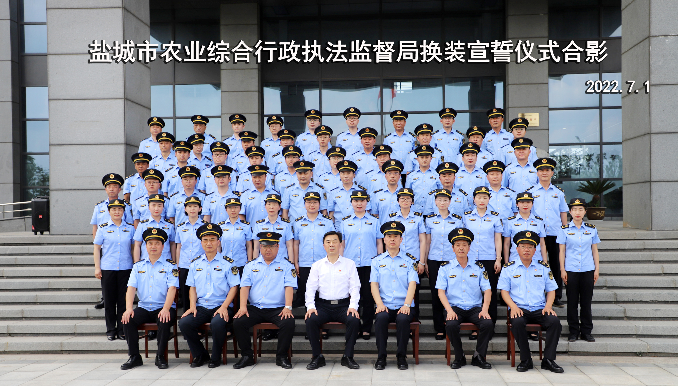 新时代,新服装,新作为,新形象。7月1日下午,盐城市农业综合行政执法监督局举行换装宣誓仪式,全体执法队员统一着新式执法制服,迎来农业综合行政执法工作全新局面。市农业农村局副书记、副局长孙新建出席并讲话,市执法监督局局长陆立中主持仪式。