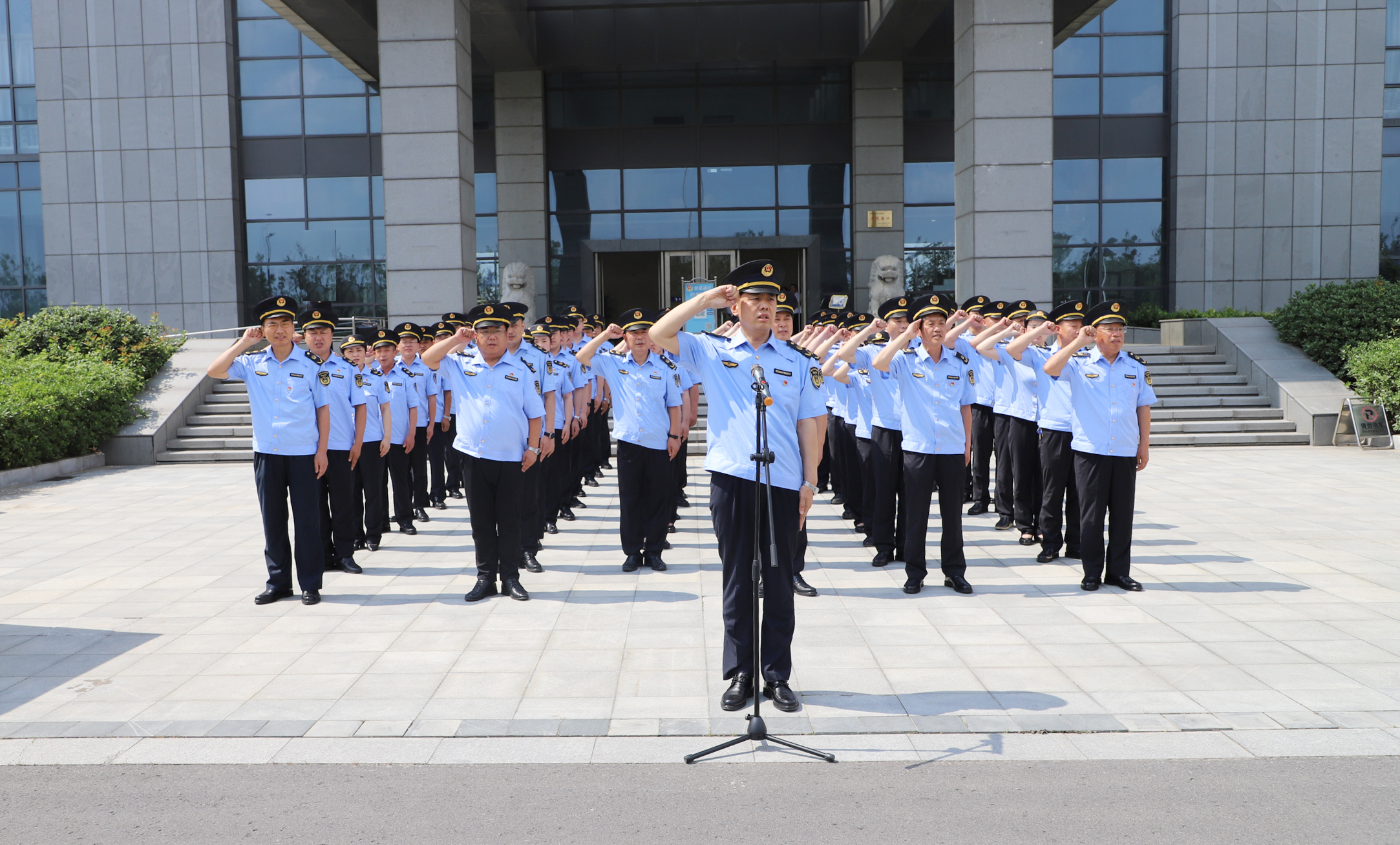 下午2:30,在嘹亮的国歌声中,换装仪式拉开帷幕。市执法监督局局长陆立中带领全体执法队员,面向国旗庄严宣誓,“坚持党的领导,以习近平新时代中国特色社会主义思想为指导,忠于宪法和法律,……”。队列中,崭新的农业综合行政执法制服格外亮眼,队员们身姿挺拔、精神饱满,展现出农业综合执法队伍的良好精神风貌。