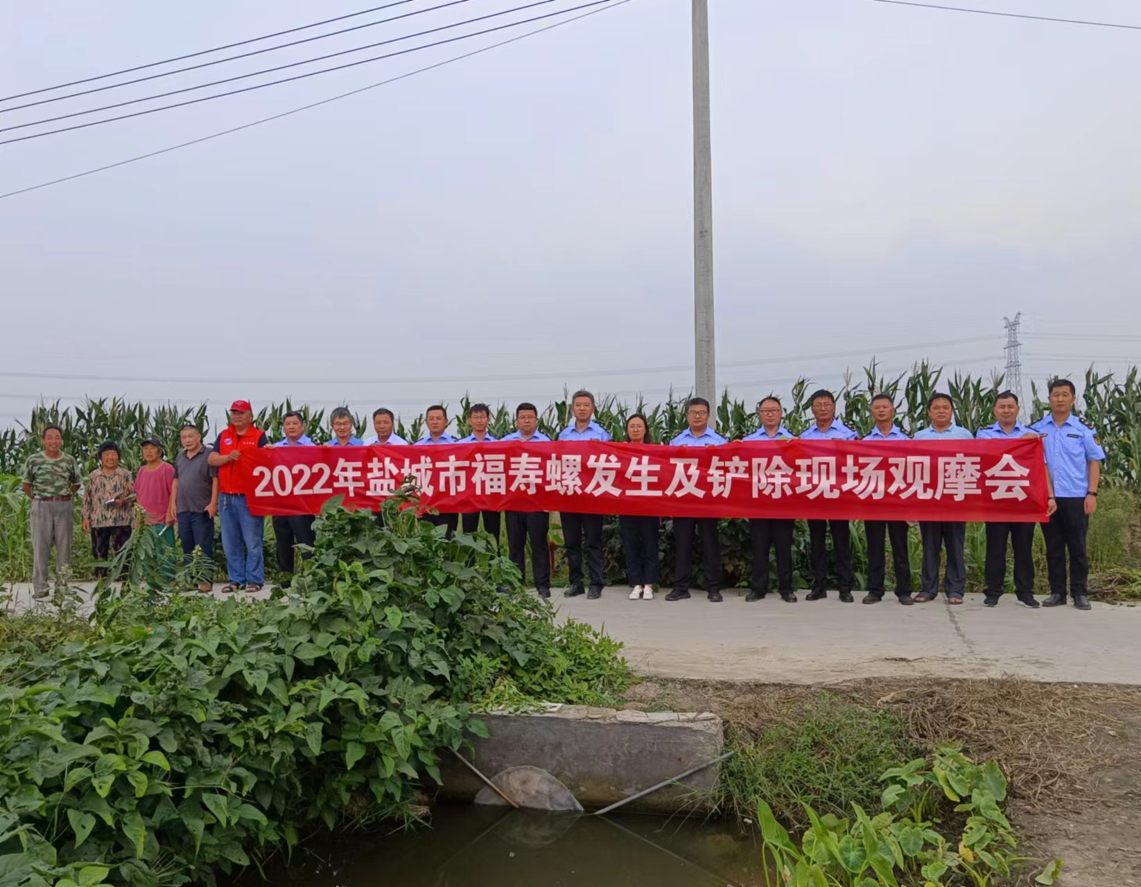 福寿螺是江苏省农业植物检疫补充对象,也是国家列入首批入侵我国的16种外来物种之一,该有害生物具有极强的适应性、繁殖能力和危害性。近年来,由于越冬带北移,再加上一些养殖场饲料夹带流失到水环境中而传播扩散。为了保障农业生态安全,9月7日-8日,盐城市植保站在东台举办了福寿螺防控现场观摩会。各县(市、区)植保(植检)站站长及相关工作人员共23人参加会议。