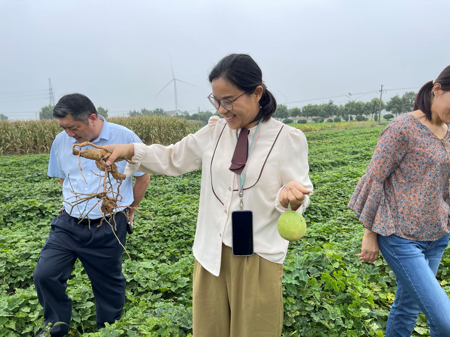 9月27日瓜蒌种植专家省农科院经作所郭书巧博士到射阳县洋马镇调研地瓜蒌种植效益。