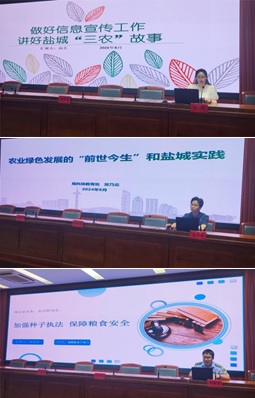 宣讲活动上,局办公室副主任高幸紧扣《做好信息宣传工作讲好盐城“三农”故事》主题,以“做好一桌菜”形象地介绍了政务信息“各大菜系”“烹饪技巧”和“摆盘品控”。局科技教育处四级主任科员龙乃云以《农业绿色发展的“前世今生”和盐城实践》为题,围绕我国农业绿色发展的千年足迹、中外农业绿色发展的典型经验、盐城农业绿色发展的探索实践作了详细介绍。市农业综合行政执法监督局农业科科长邵珠清聚焦《加强种子执法保障粮食安全》,介绍了种子执法相关工作,交流了种子执法实操案例与工作体会。