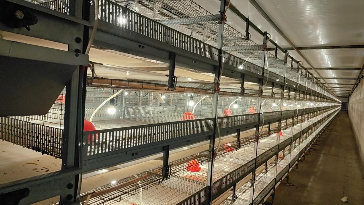江苏盛康农业科技有限公司拥有8栋生产车间,每间设计1100平方米。其中孵化间一栋,养殖车间6栋,采用6层6列的饲养方式,设计存栏为20万/栋,车间内消毒、喂水、集蛋、清粪和环控全部实现自动化。
