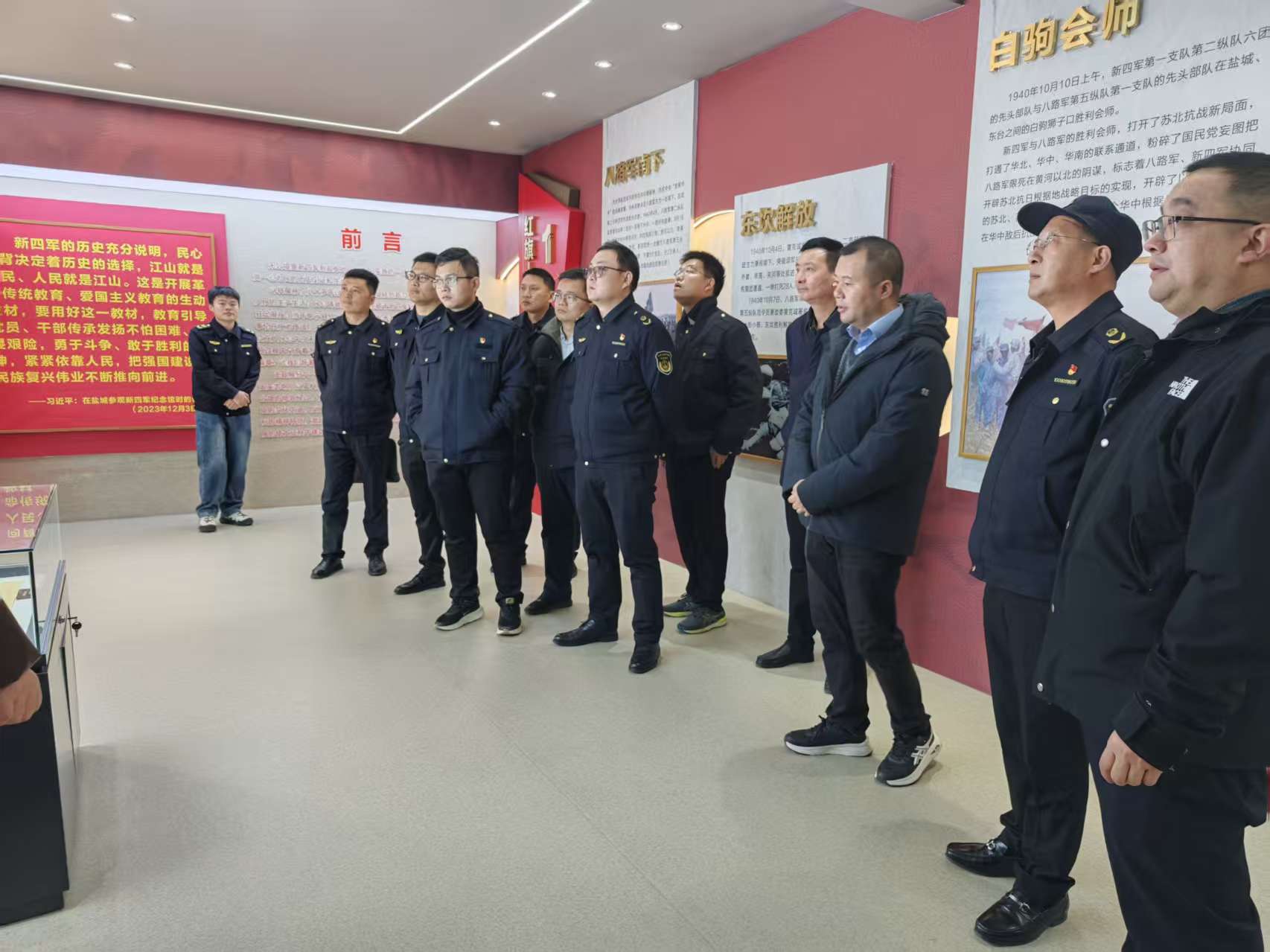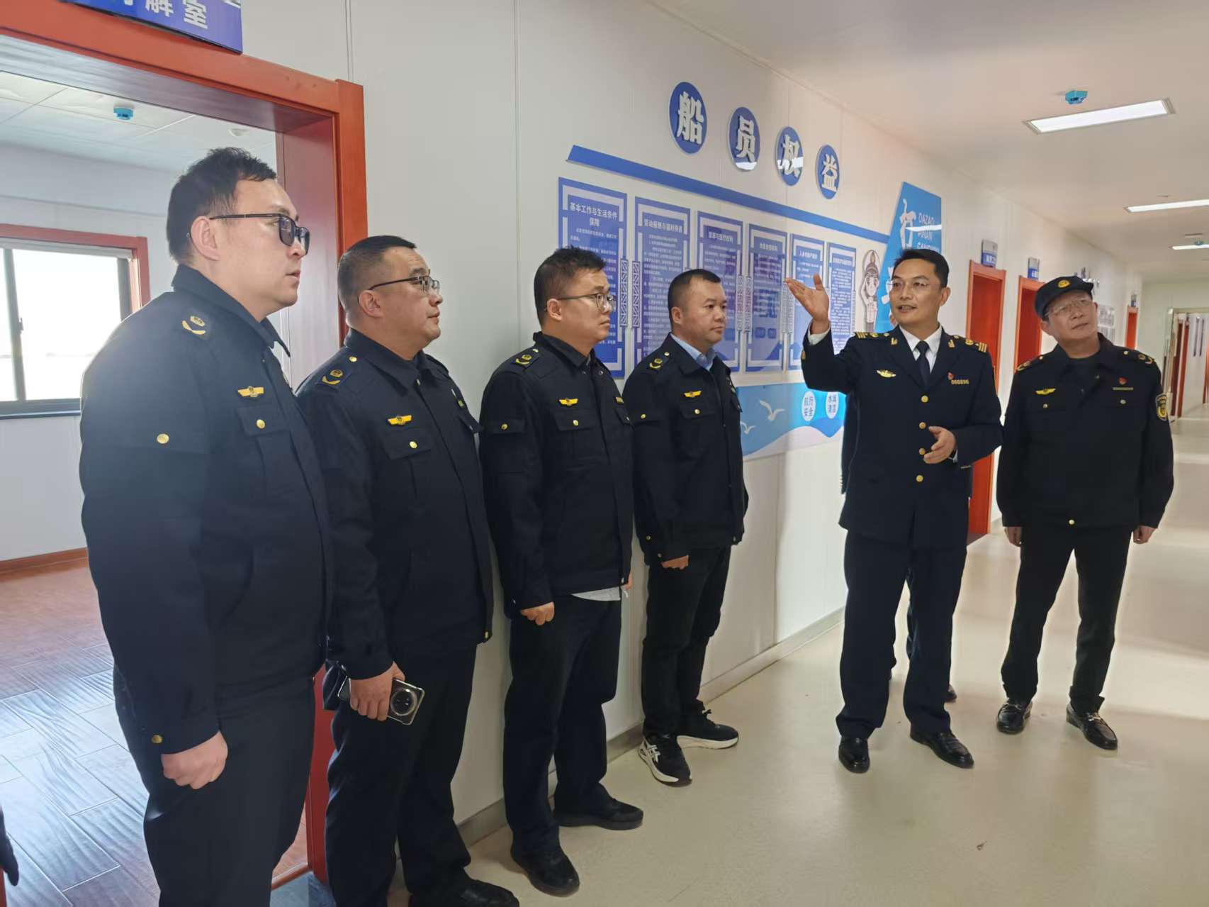 随后,全体人员共同参观了滨海港船员之家与宋公堤纪念馆。在船员之家,大家实地察看了船员服务设施、培训场地等建设情况,深入了解船员日常服务保障工作开展现状;走进宋公堤纪念馆,一幅幅珍贵的历史图片、一件件承载记忆的文物史料,生动再现了当年军民齐心筑堤的壮阔场景,让在场人员接受了一次深刻的红色精神洗礼,进一步坚定了履职尽责、为民服务的初心使命。