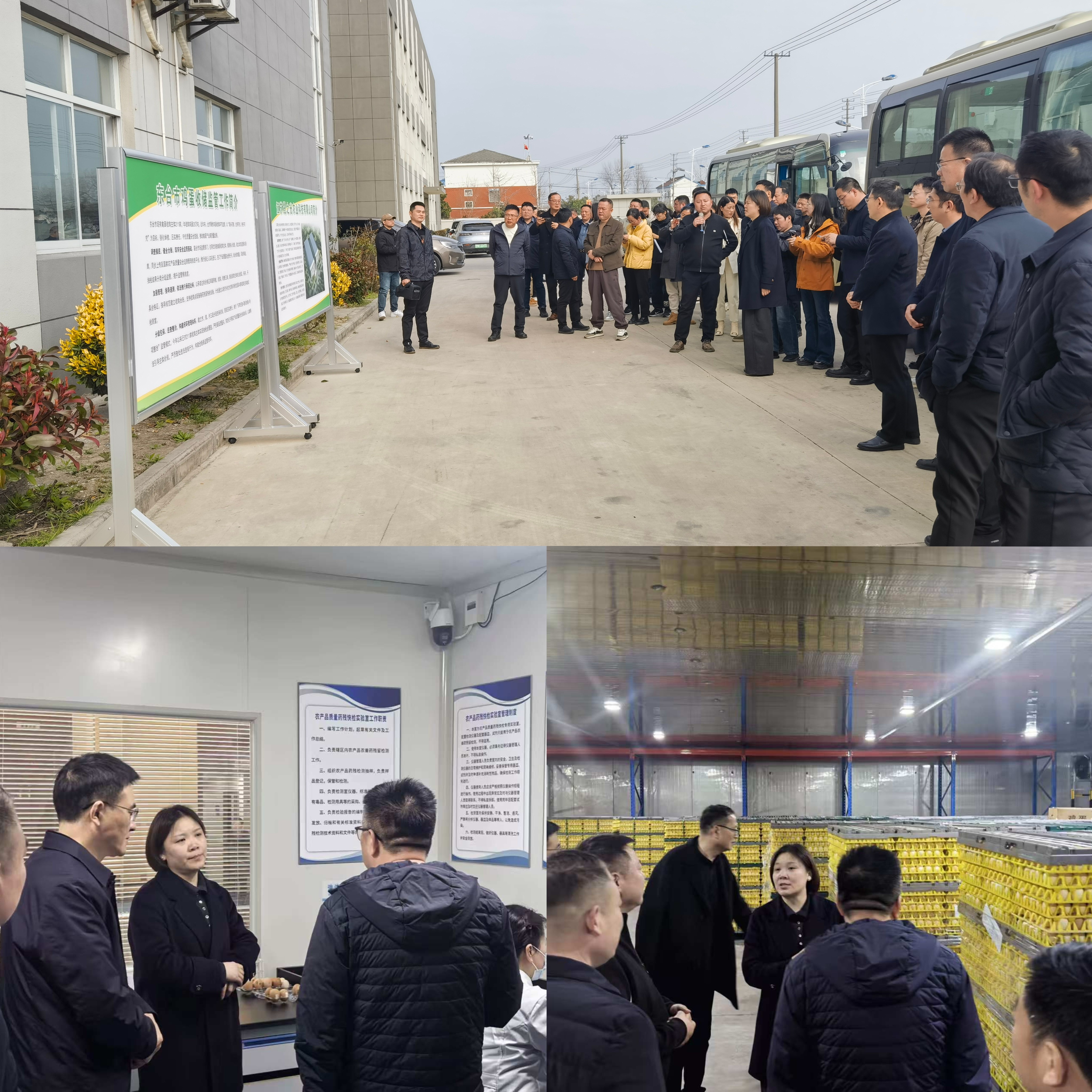 参会人员在东台鱼米之乡农产品有限公司和江苏晟之光农业科技有限公司现场观摩了蛋鸡养殖、粪污处理和鸡蛋收购、储存、加工等流程,技术人员对鸡蛋试样制备、胶体金药物残留快速检测、承诺达标合格证出具等过程进行了演示。在东台现代农业产业园检测中心,参会人员参观了农产品质量安全检测室,技术人员对各种仪器设备、胶体金速测卡和速测流程进行了介绍,并解答了相关问题。